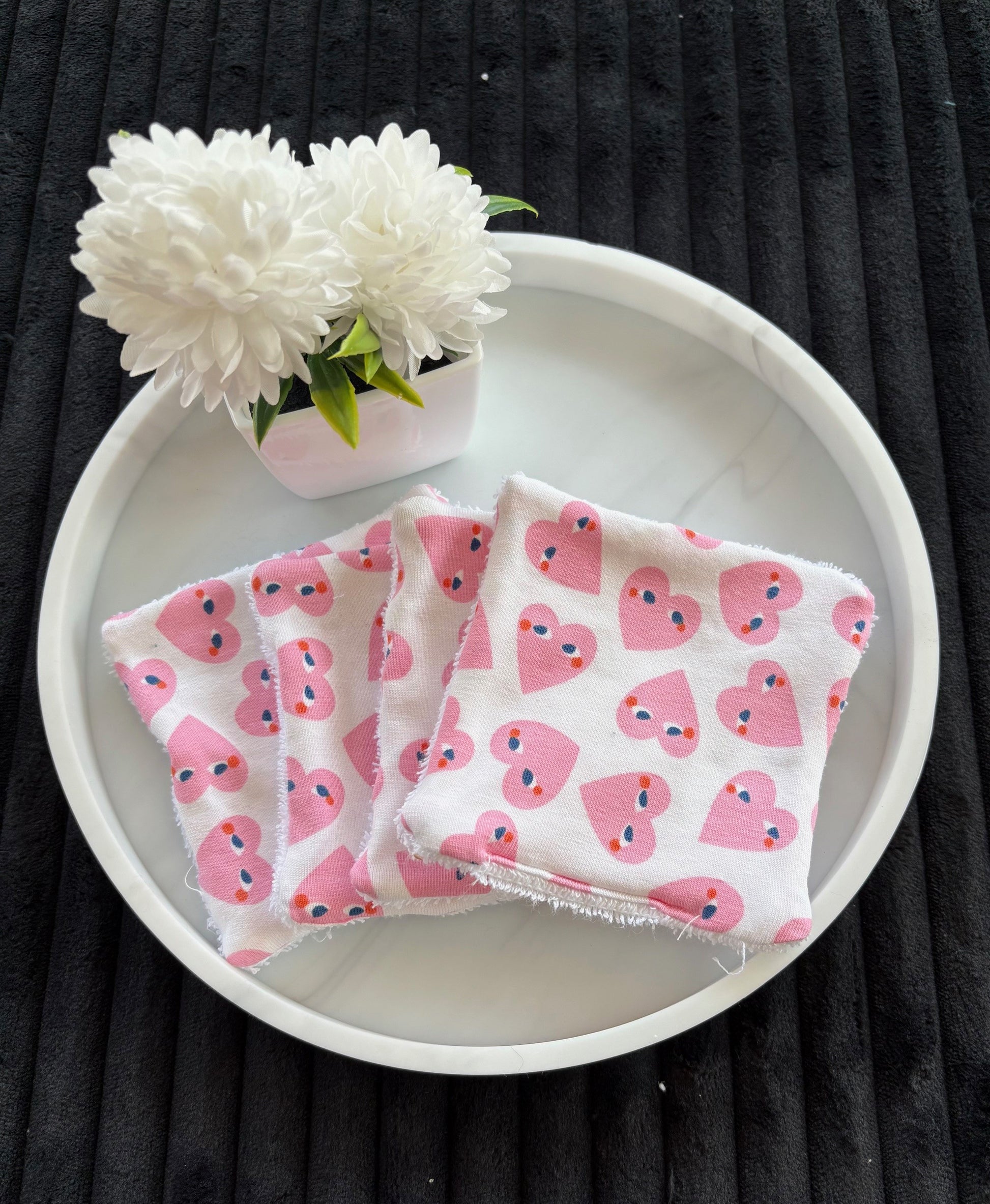 4 Cotons lavables réutilisables coeur