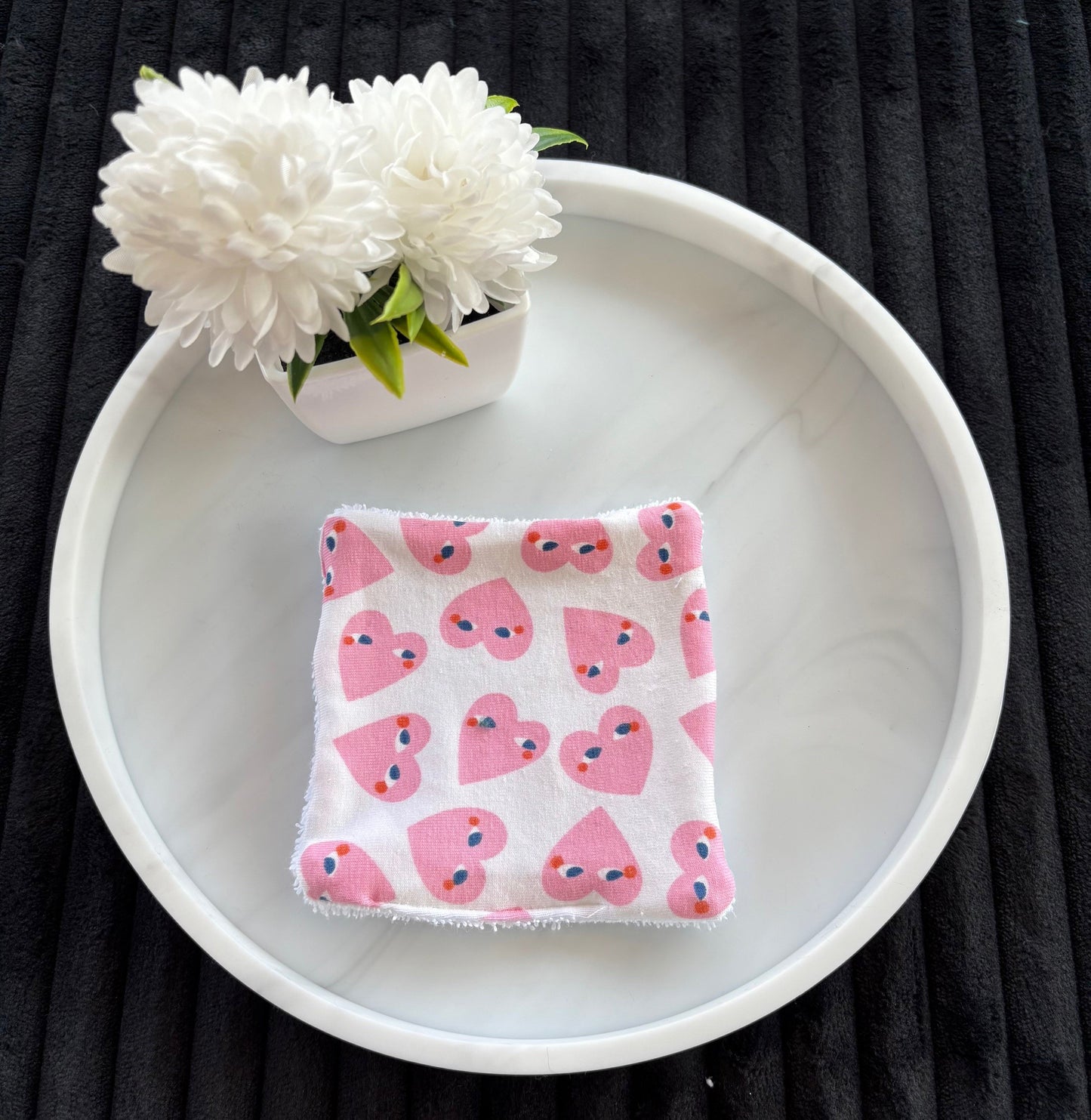 - 1 face en coton imprimé cœur rose