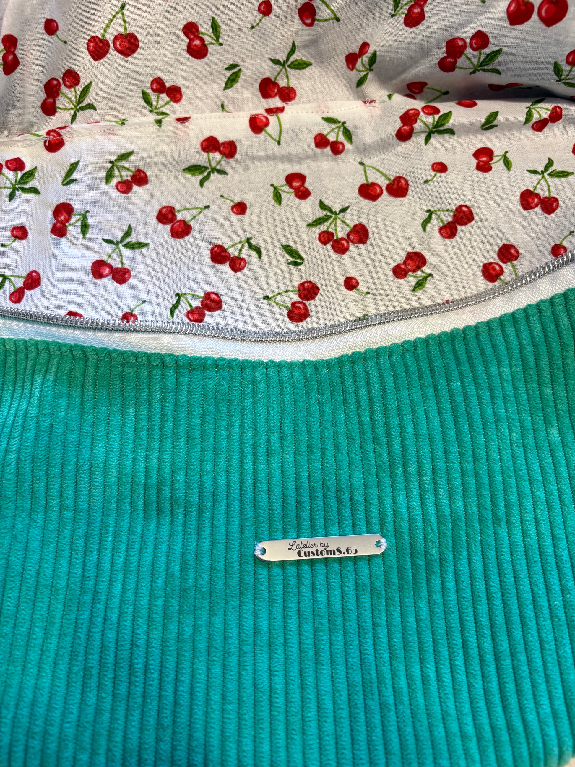 Sac banane XXL velour côtelé (fine côte) vert sangle fleurie verte