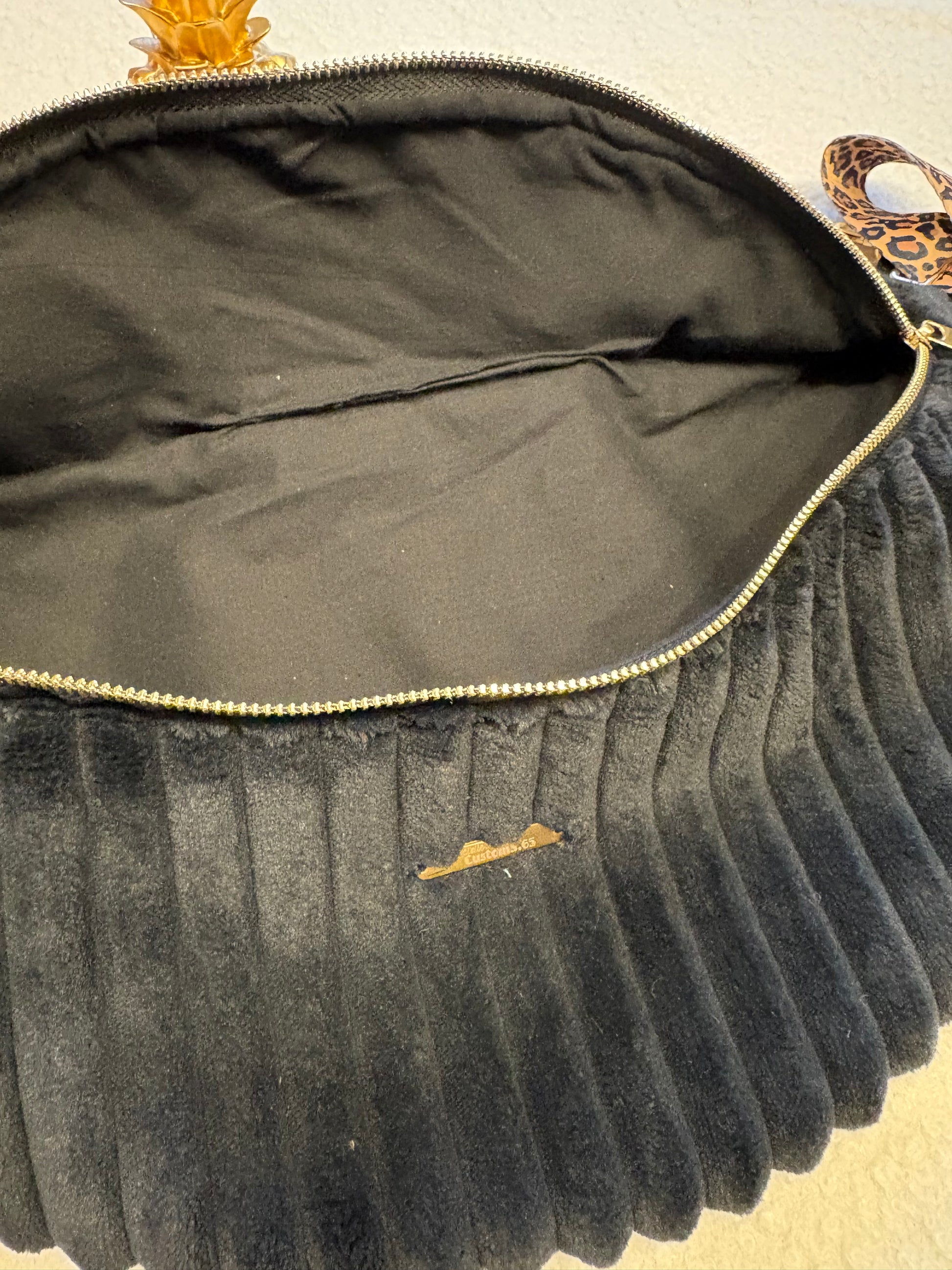 Sac banane XXL velour côtelé (trés large côte) noir sangle léaopard