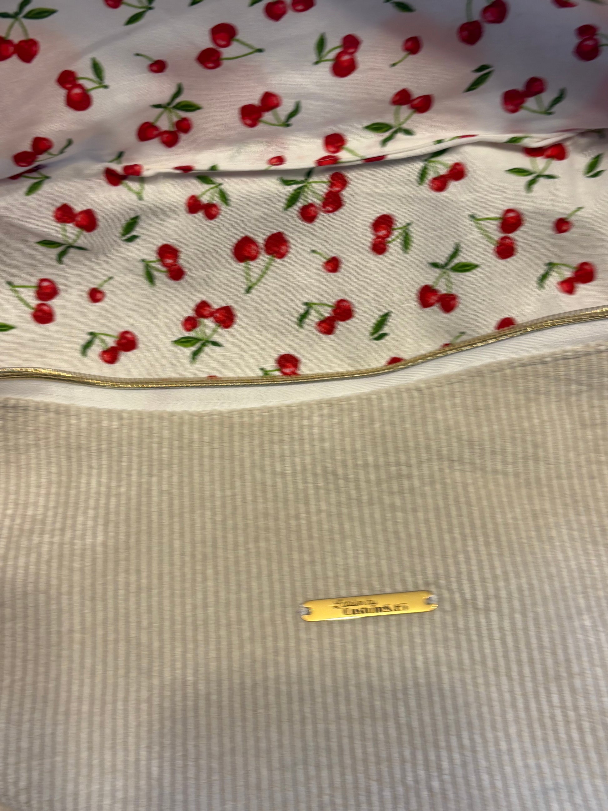 Sac banane XXL velour côtelé (fine côte) écru capot fleuri sangle unie écru