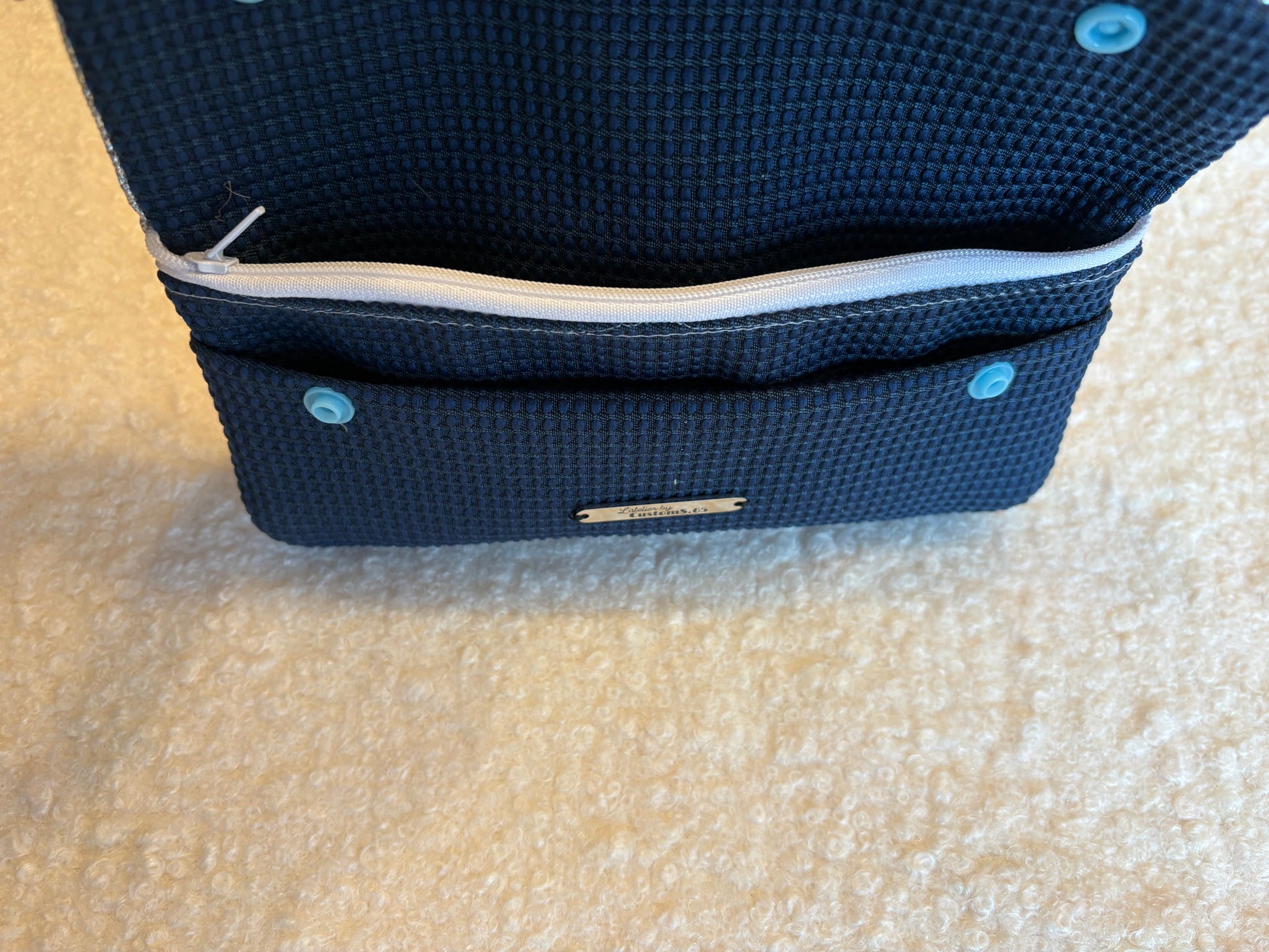 Portefeuille tissu bleu marine rabat simili cuir argenté