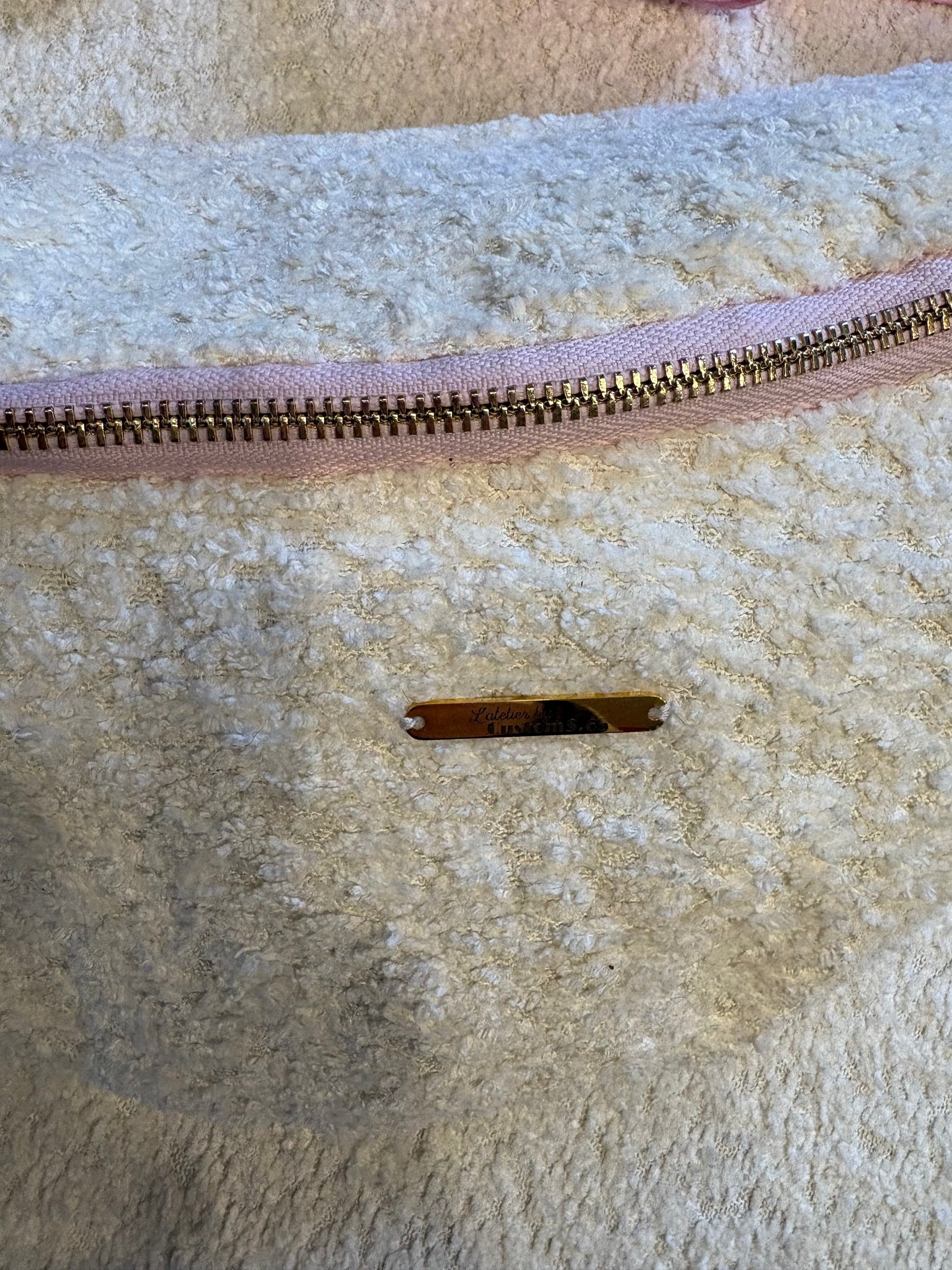 Sac banane moumoute blanche sangle léopard rose