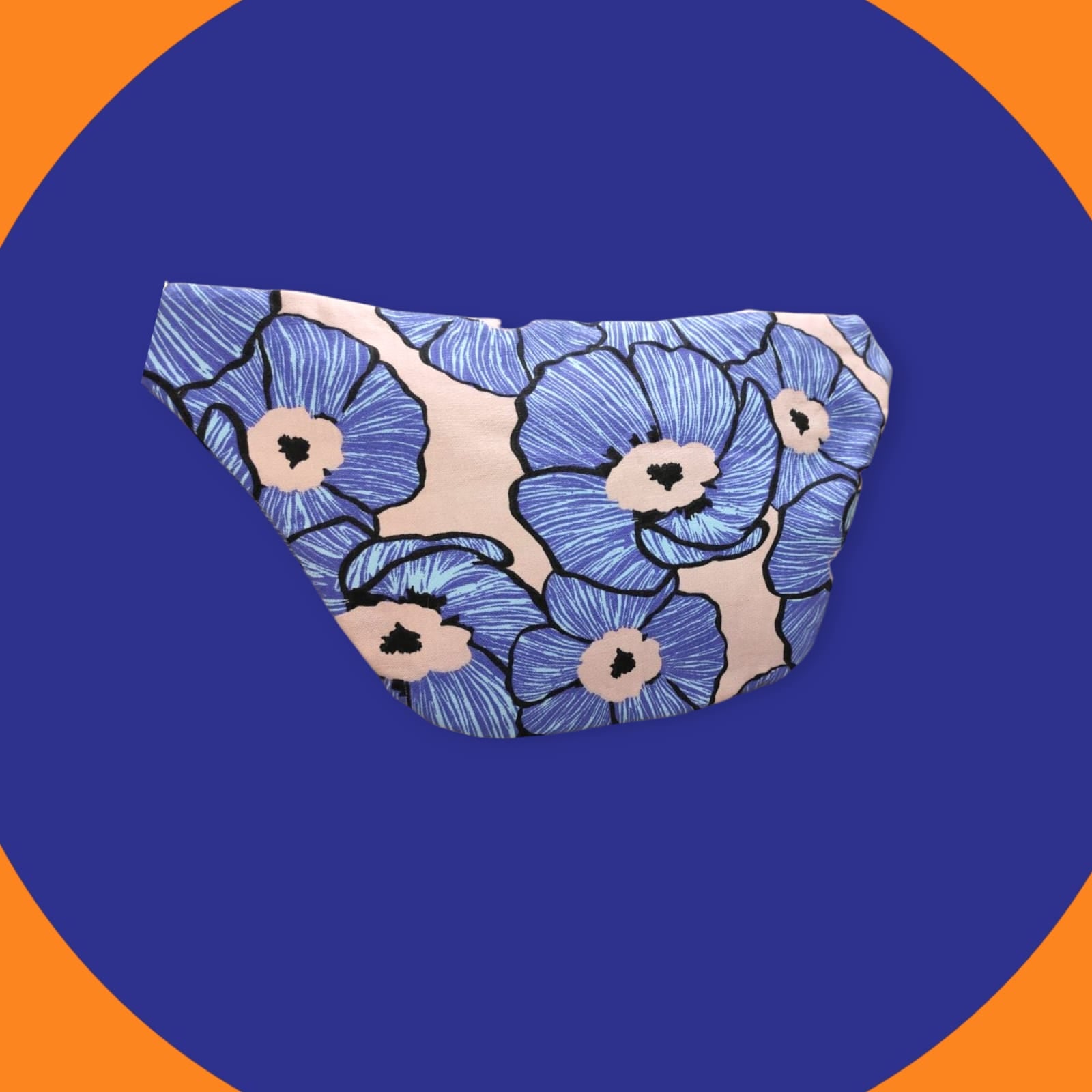 Sac banane grosse fleur bleu rose clair capot nid d'abeilles rose clair