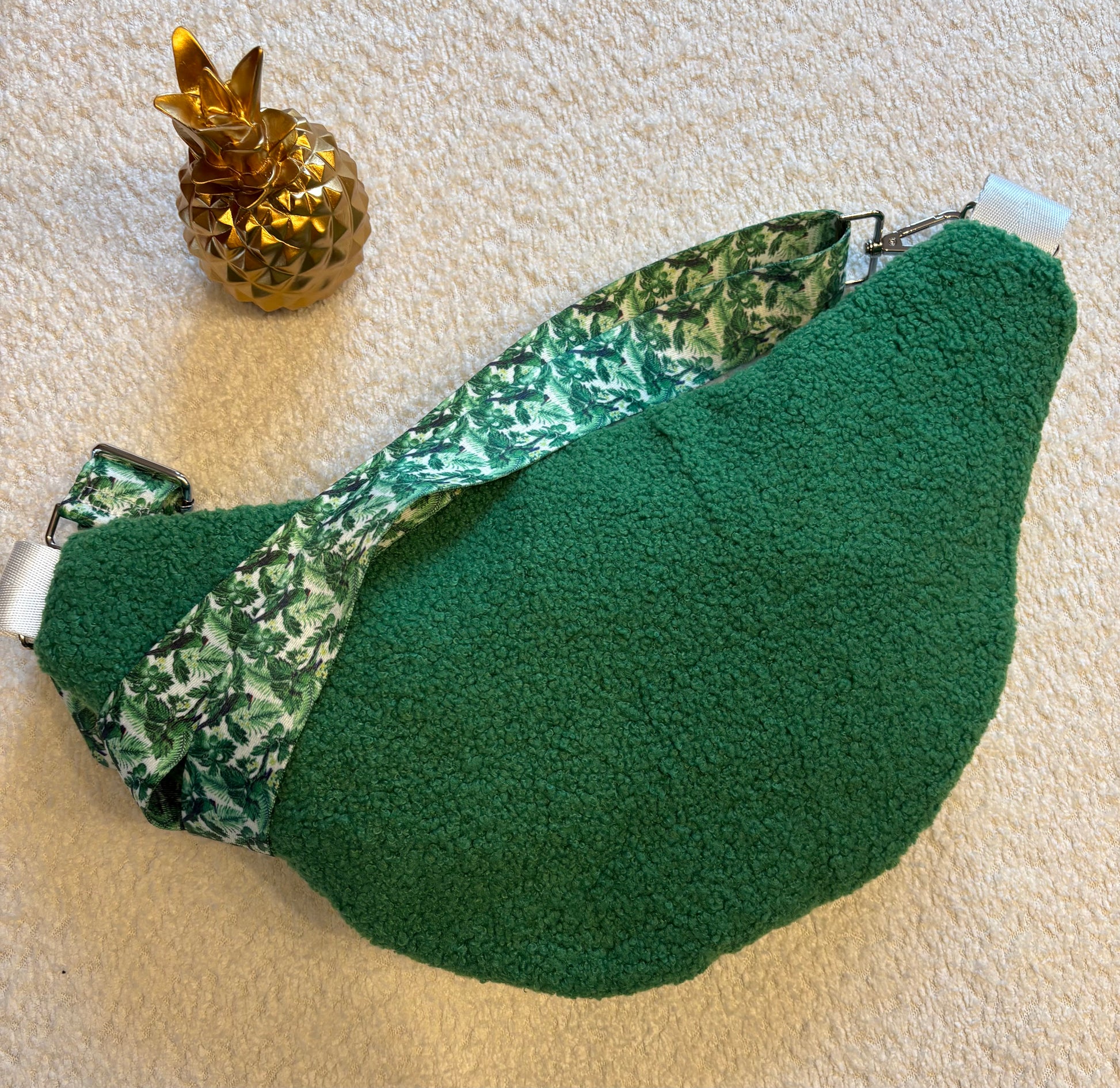 Sac banane XXL moumoute verte sangle verte fleurie