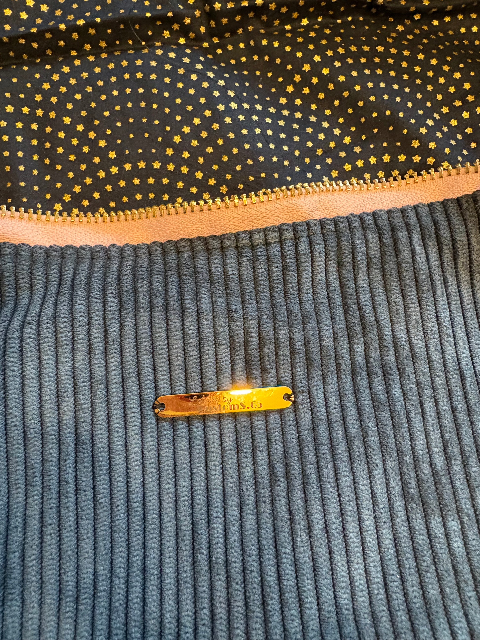 Sac banane XXL fine côte bleu sangle bleu/rose