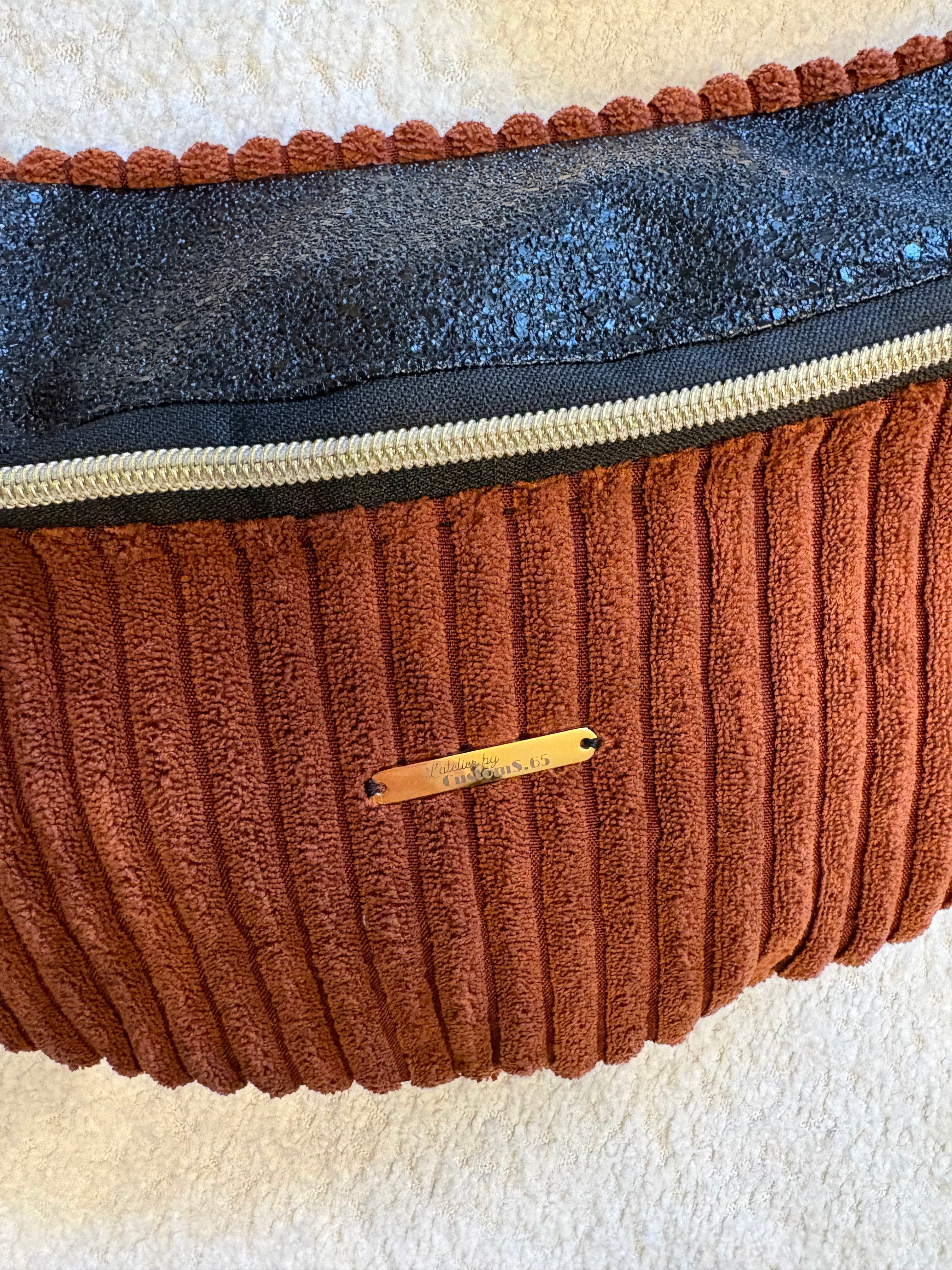 Sac banane fine côte brique capot noir pailleté sangle marron/noire