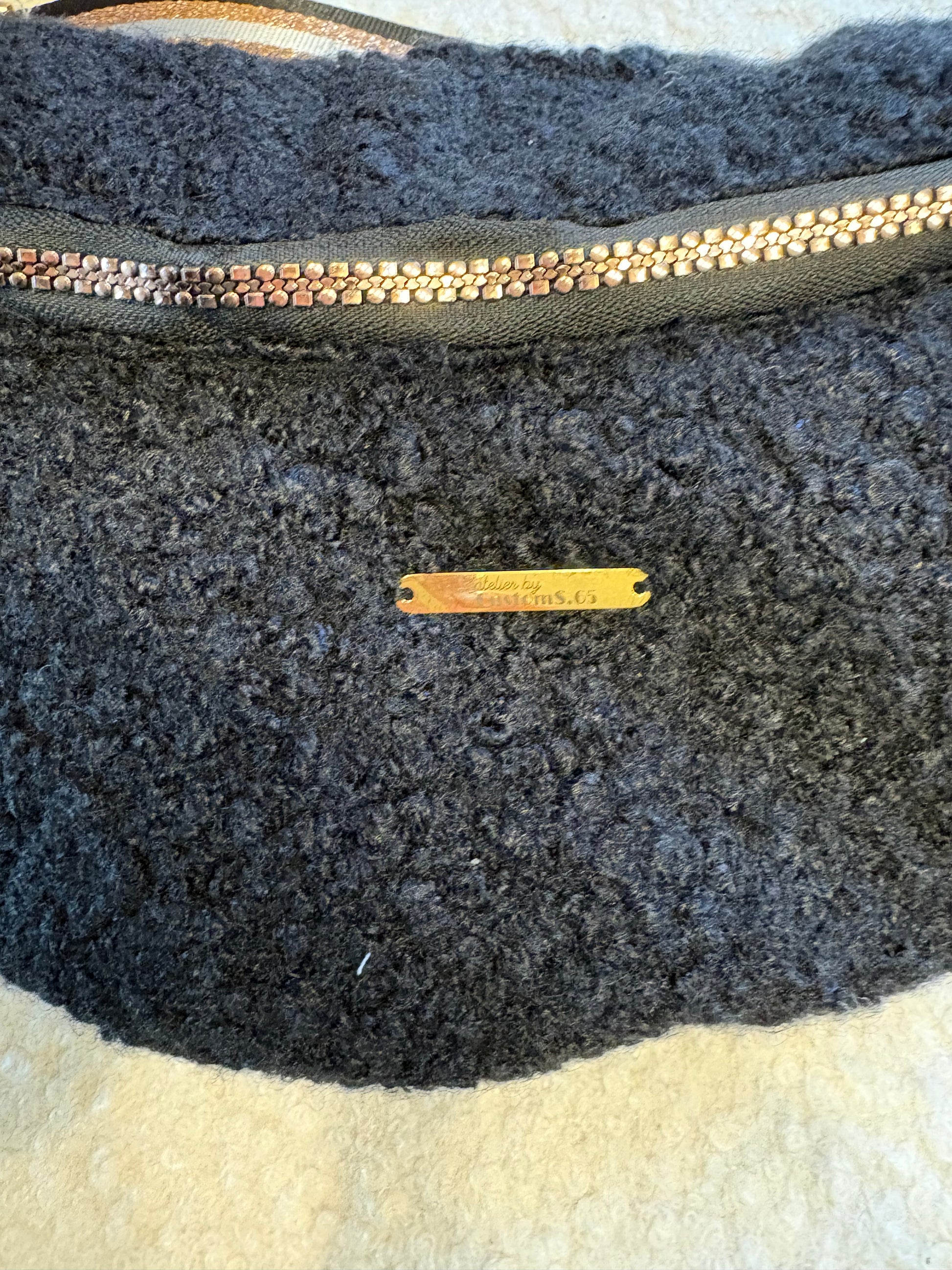 Sac banane XXL moumoute noire sangle noire et dorée