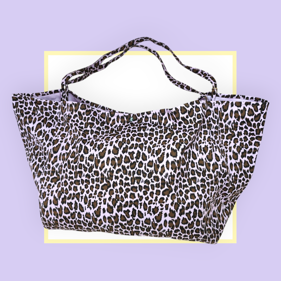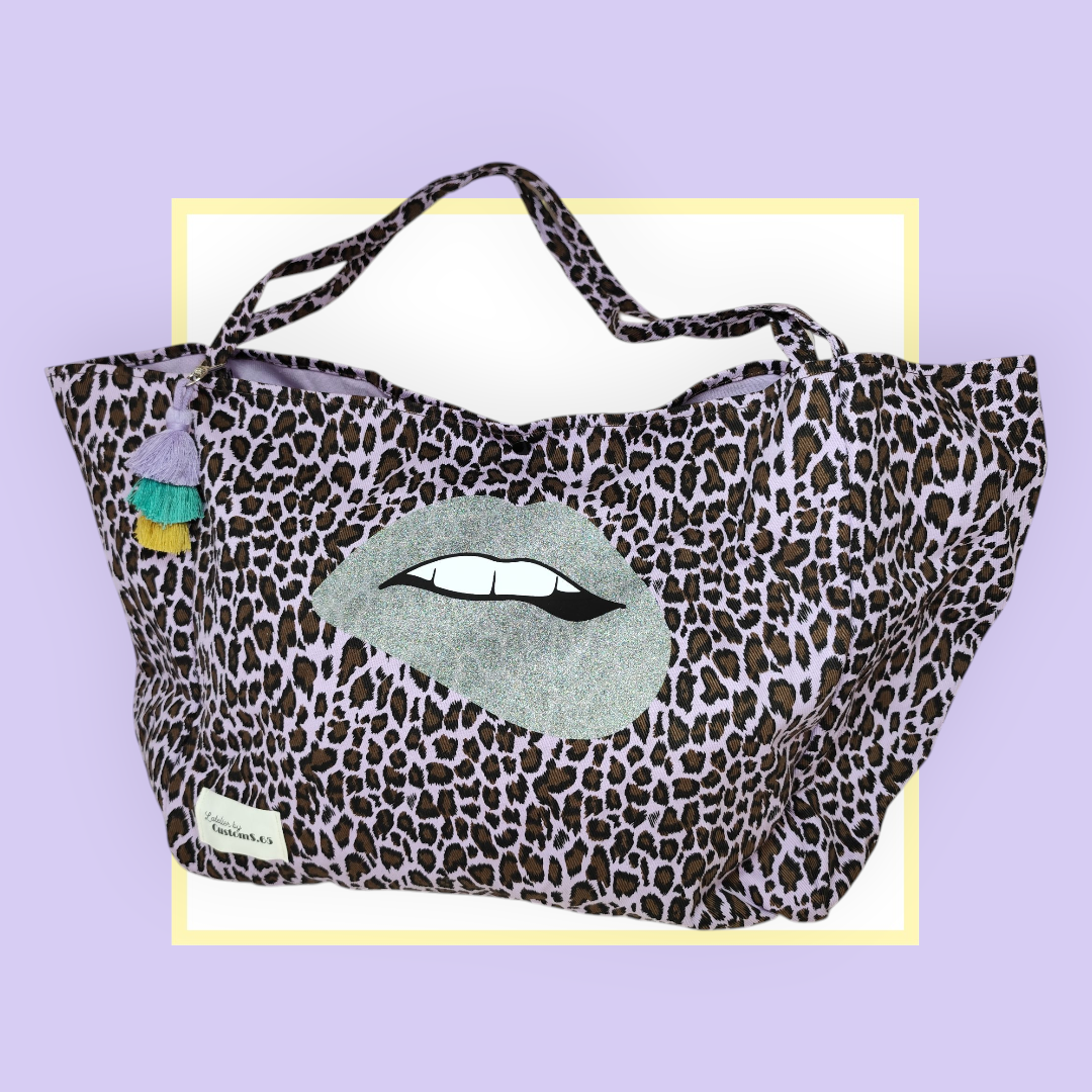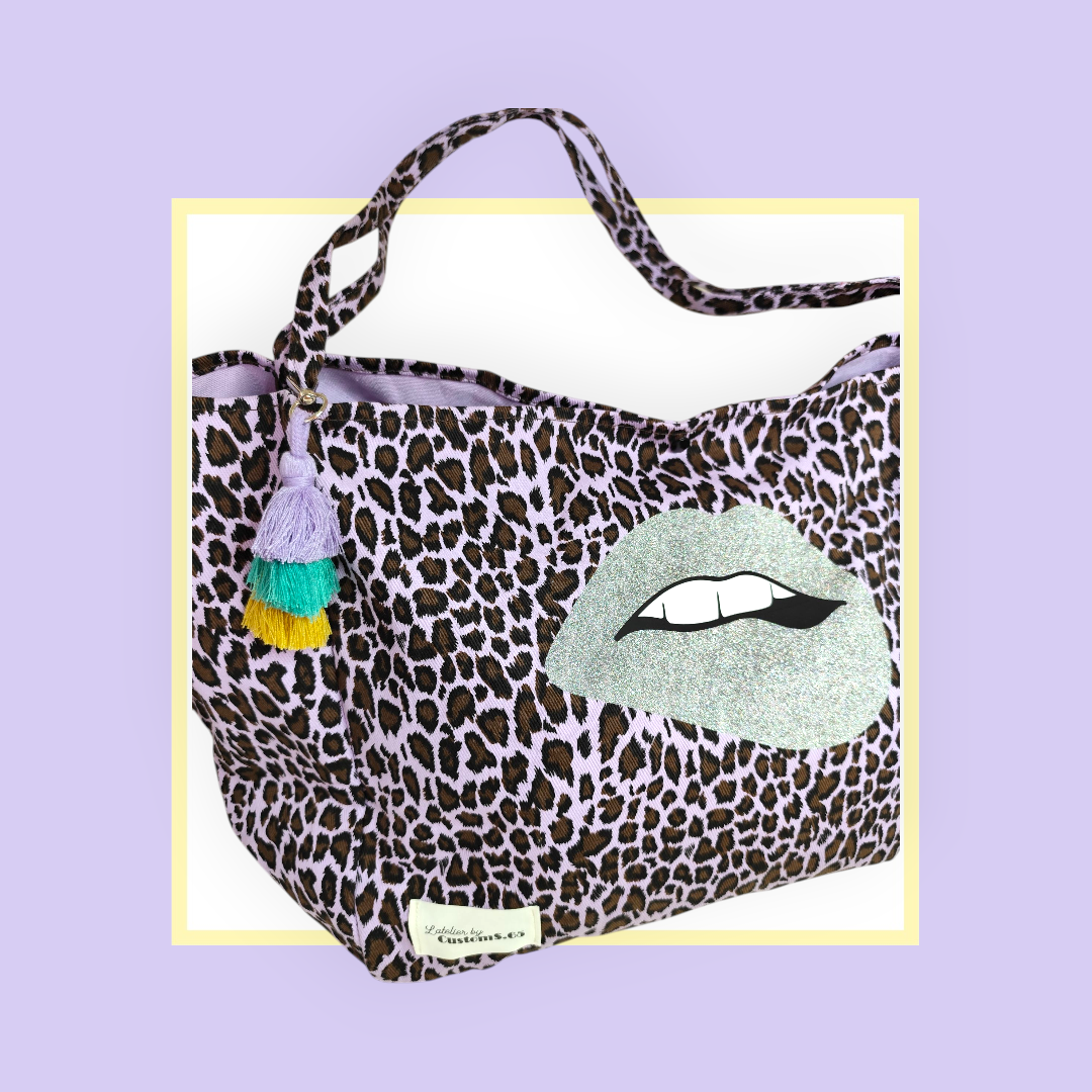 Sac Cabas léopard parme bouche argentée