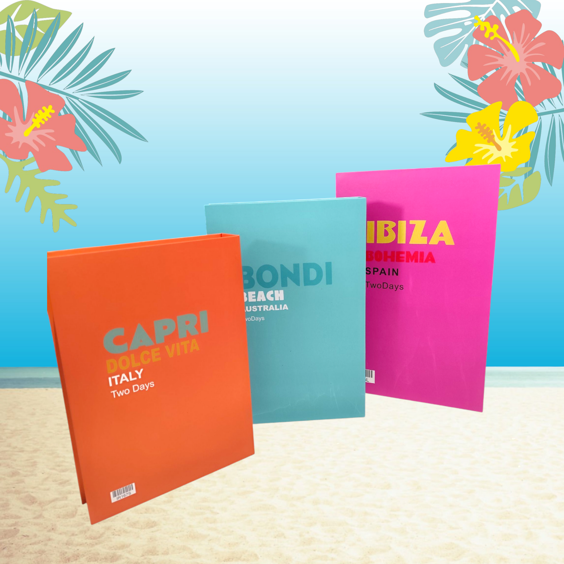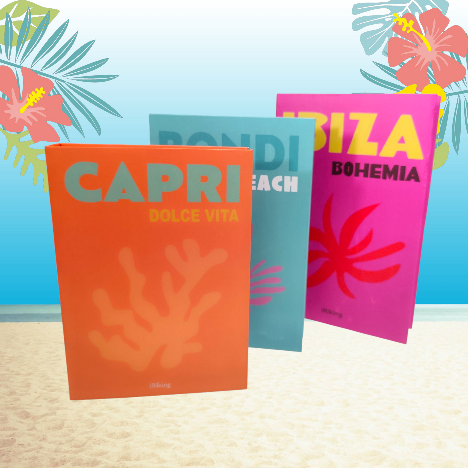 Leurs couvertures éclatantes inspirées des plus belles destinations — Capri, Bondi Beach, Ibiza — insufflent une ambiance vacances et bord de mer à votre déco.