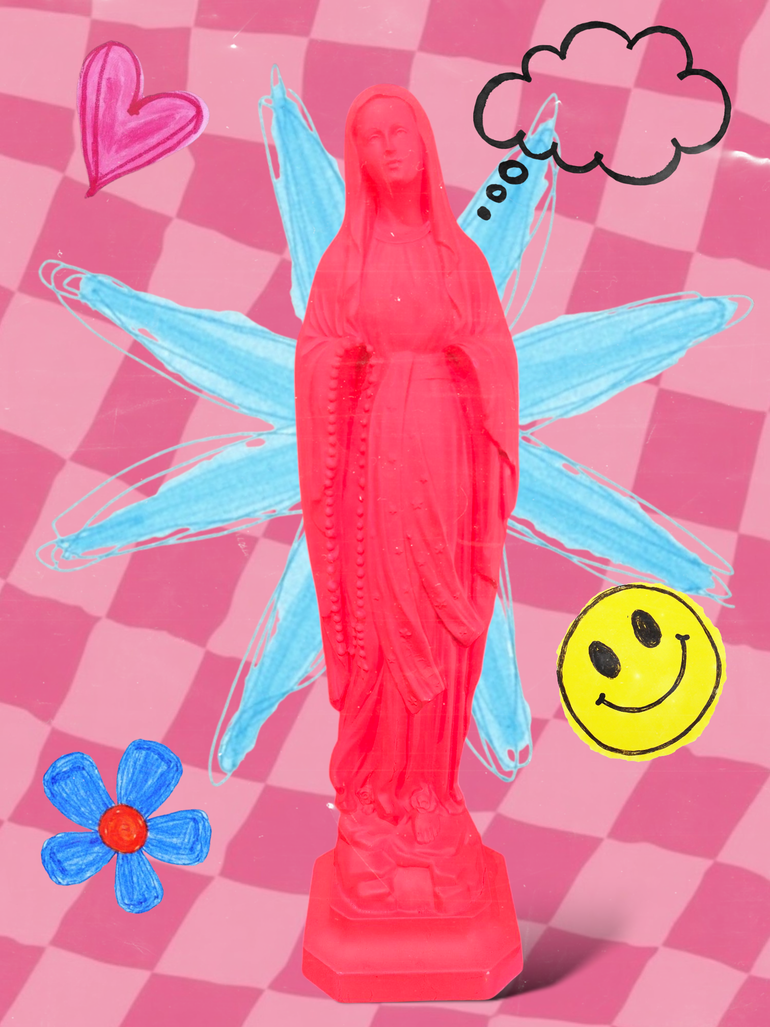 Parce qu’on aime mixer les univers, voici notre Vierge Marie fluo : une touche pop et décalée pour revisiter le sacré à notre façon.