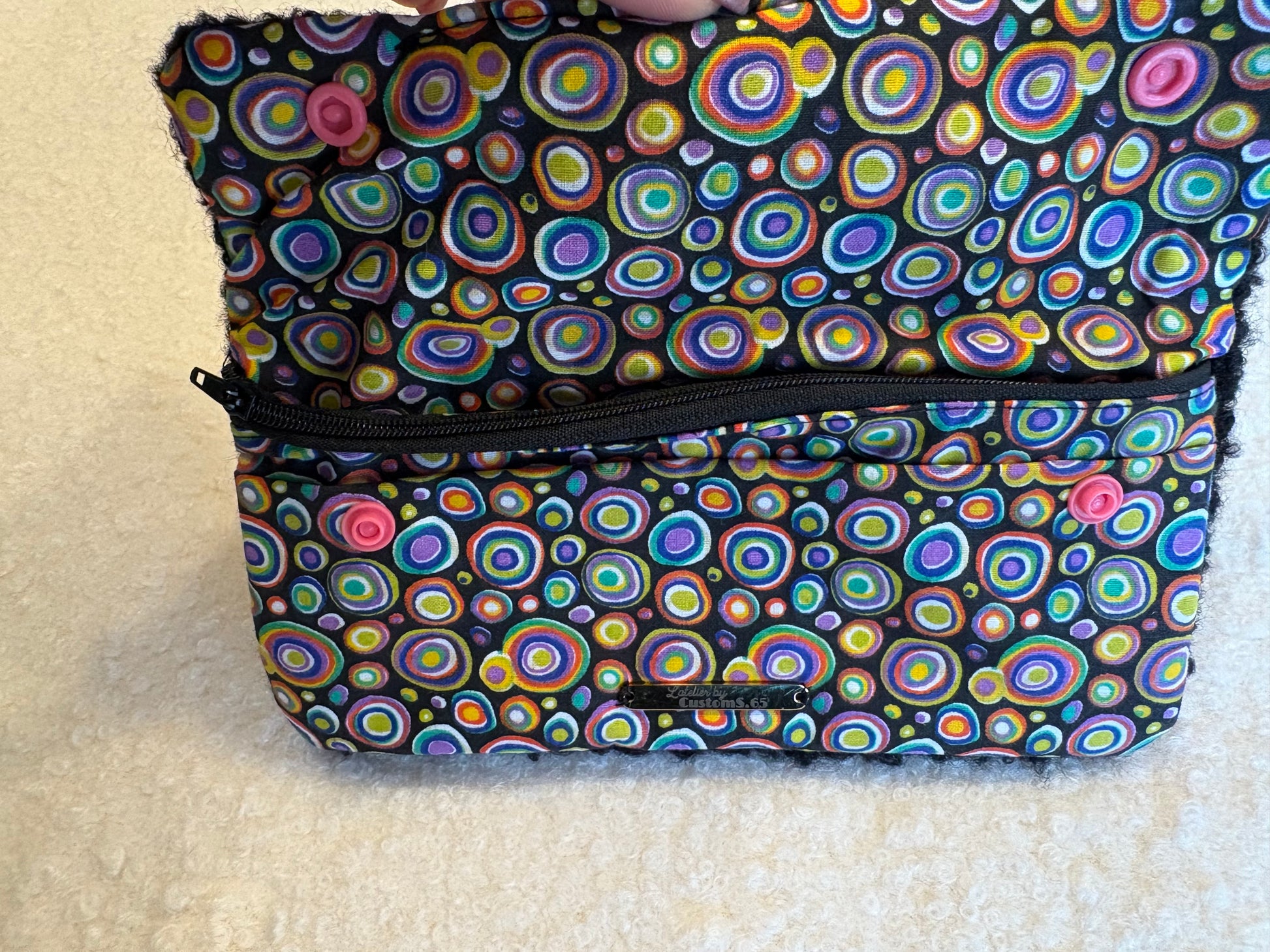 Portefeuille tissu psychédélique rabat moumoute noir